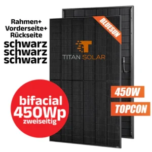 Nr. 1462 auf Platte 32 StĂĽck 14,4kWp BLUESUN 450W FULL BLACK HALF CELL TOPCON BSM450M10-54HNH GLAS/GLAS Bifacial N-Type