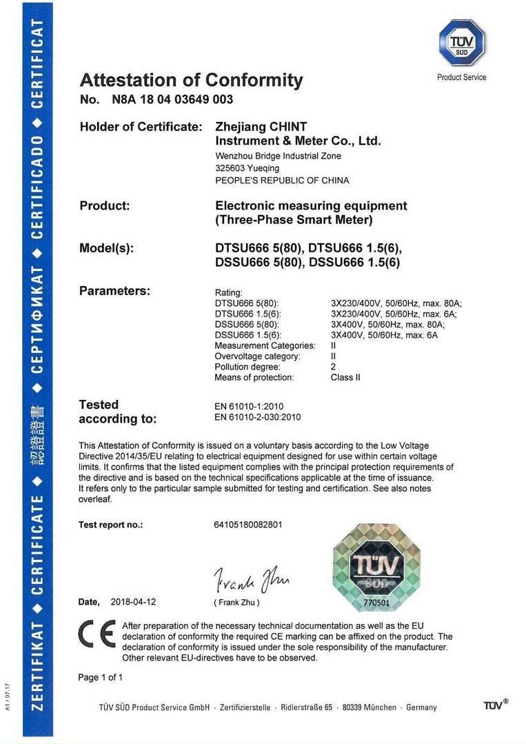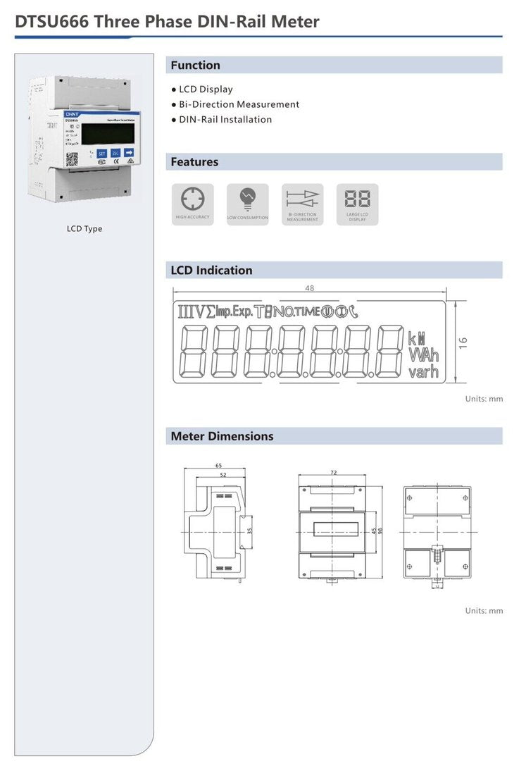 Art. 1058 – Stromzähler Chint Smart Meter RS485 DTSU666 100A/40mA 50Hz 3×220-380V 3 Phasen
