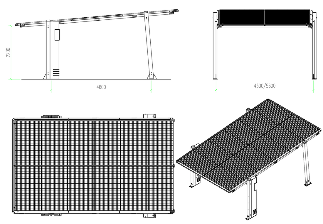 Carport mit 8 kWp Solarpaneelen (12x660W)