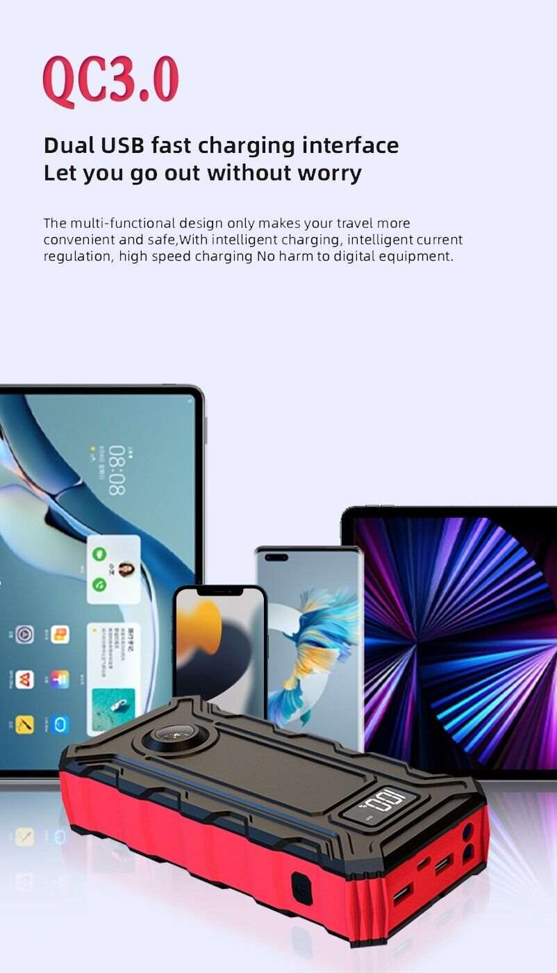 Auto KFZ Starthilfe Jump Starter 25000mAh 5V 9V 12V Ladegerät Booster Powerbank DE.